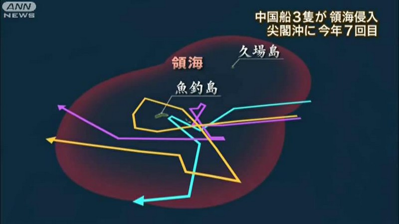 报道称, 18日上午8时54分至9时17分,中国3艘海监船相继进入钓鱼岛附近的“日本领海”,日本海上保安厅巡逻船立即发出警告。中国“海监50”则通过无线电用中文和英语回答称,钓鱼岛及其附属岛屿是中国领土。共同社称,3艘中国船环绕钓鱼岛航行约5小时,“海监50”最近时仅距岛约1公里。