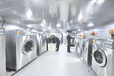 负责全体舰员衣物的洗涤、烘干、熨烫,所有送洗衣物上都统一挂上姓名标签,舰员只需将待洗衣物装进洗衣袋内,送至洗衣房,过半天时间自取即可。