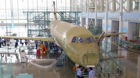 中国经济网航空讯 据中国商飞有限公司报道,ARJ21-700飞机106架机于6月28日移入飞机总装车间后,飞机总装车间紧锣密鼓地进行前货舱隔音棉的敷设、电缆导线的地面返修、后附件舱液压系统相关附件的安装等装配任务,以及通压和导通前的准备工作。