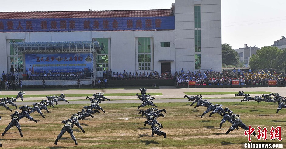 17日,在中国第13个国防教育日之际,“蓝天逐梦、天兵有约”中国空军部队军营首次社会开放。武汉市1200余人走进军营,近距离接触空降兵主战武器装备,体验官兵日常训练生活。图为部队训练。袁文涛徐金波/文 林奎/图