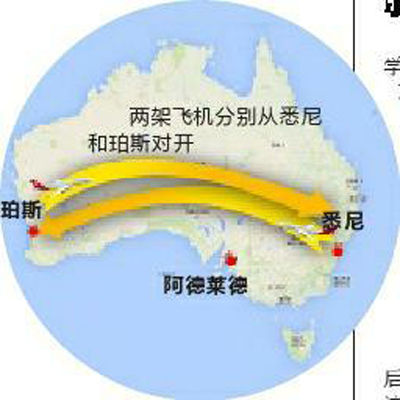 20日12时,两架分别从澳大利亚悉尼和珀斯市对开的A330空客正好经过阿德莱德以西19公里的上空。