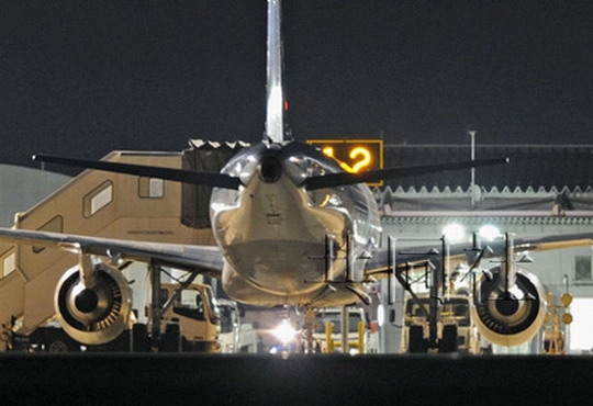 图:2012年2月5日上午,一架全日空的空中客车A320客机在仙台机场着陆时机身后部与地面发生接触。日本共同社图片