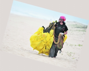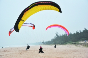 这是一群“斗伞”的人,从他们的如小麦般的肤色不难看出他们对于阳光和沙滩的热爱,他们手中的滑翔伞在海风中像撑满了的帆,似乎稍一放松,它就会带着操纵者乘着风向天边飞去,地上的操纵者则像在与大自然较量,他们把身体重心放到最低,几乎都要坐在甚至躺在沙滩上。