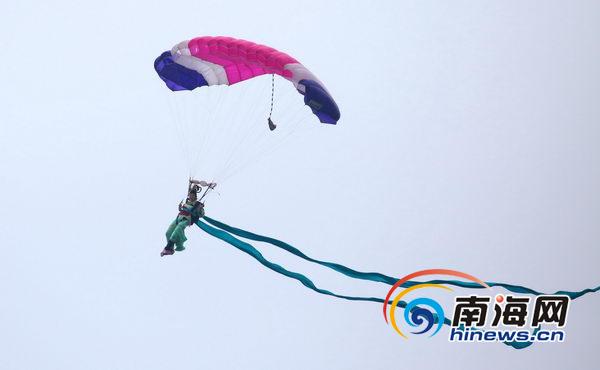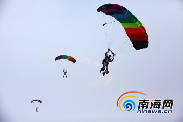 跳伞员在空中玩起烟花特技,精彩纷呈(南海网记者张茂摄)