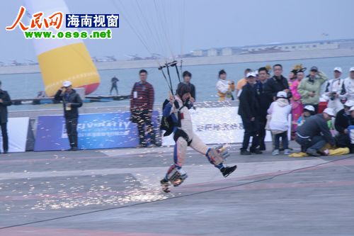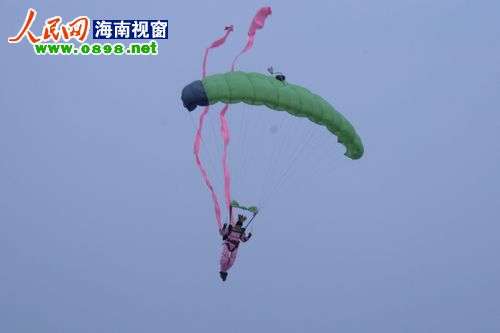 17日上午,2011环海南飞行拉力赛在海口举行了隆重的开幕仪式。直升机同心圆旋转、模型机超低空飞行、跳伞队上演“七仙女下凡”……八一跳伞队、河南跳伞队、翱翔中国航空模型特技飞行表演队等在万绿园旁人工岛上演了一场华丽的飞行表演秀,一系列超乎想象的精彩表演让现场观众叹为观止。