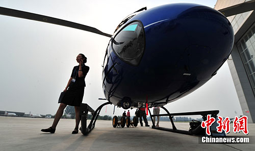 图为能容六名人员的轻巧小松鼠直升机在展会上成为明星。中新社发 邹宪 摄