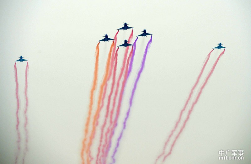 11月18日下午,珠海机场的上空乌云密布,天气极为复杂多变。空军八一表演队在十万多观众的欢呼雀跃中,完成一系列高难动作,为第九届珠海航展圆满谢幕。