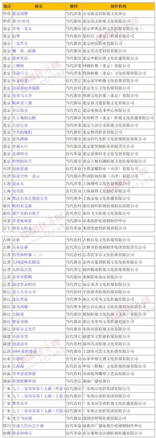 《广播电视总局办公厅关于2020年10月全国拍摄制作电视剧备案公示的通知》明确,按题材划分,当代题材42部、1477集,分别占公示总数的73.68%和72.72%,其中,当代都市题材22部792集,当代农村题材8部256集,当代青少题材3部83集,当代涉案题材5部196集,当代其它题材4部150集。