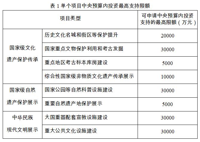 (一)资金安排标准。对中央单位项目,原则上按照核定总投资予以足额支持。对地方(含新疆生产建设兵团,下同)项目,国家发展改革委综合考虑中央和地方事权划分原则、区域发展支持政策等,确定文化保护传承利用工程中央预算内投资对单个项目实行支持比例和最高限额双限控制,具体支持比例参照《文化保护传承利用工程中央预算内投资专项管理办法》有关规定执行,超出部分不纳入中央预算内投资支持范围(见表 1)。