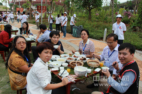 普洱部落民族大联欢上的长街宴。张卫卫/摄